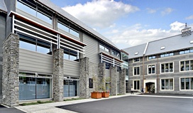 This deceptively simple building form houses large-scale testing facilities, together with academic research and office spaces with state-of-the-art features including solar chimneys for natural ventilation.